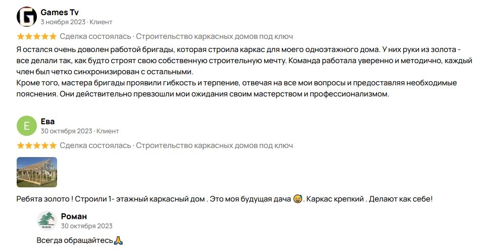 Я очень доволен сотрудничеством с компанией, которая строит дома из бруса. Процесс строительства прошёл гладко, без задержек и проблем. Бригада строителей работала профессионально и аккуратно. Дом получился красивый и тёплый. Рекомендую эту компанию всем, кто ищет надёжного подрядчика для строительства дома из бруса.